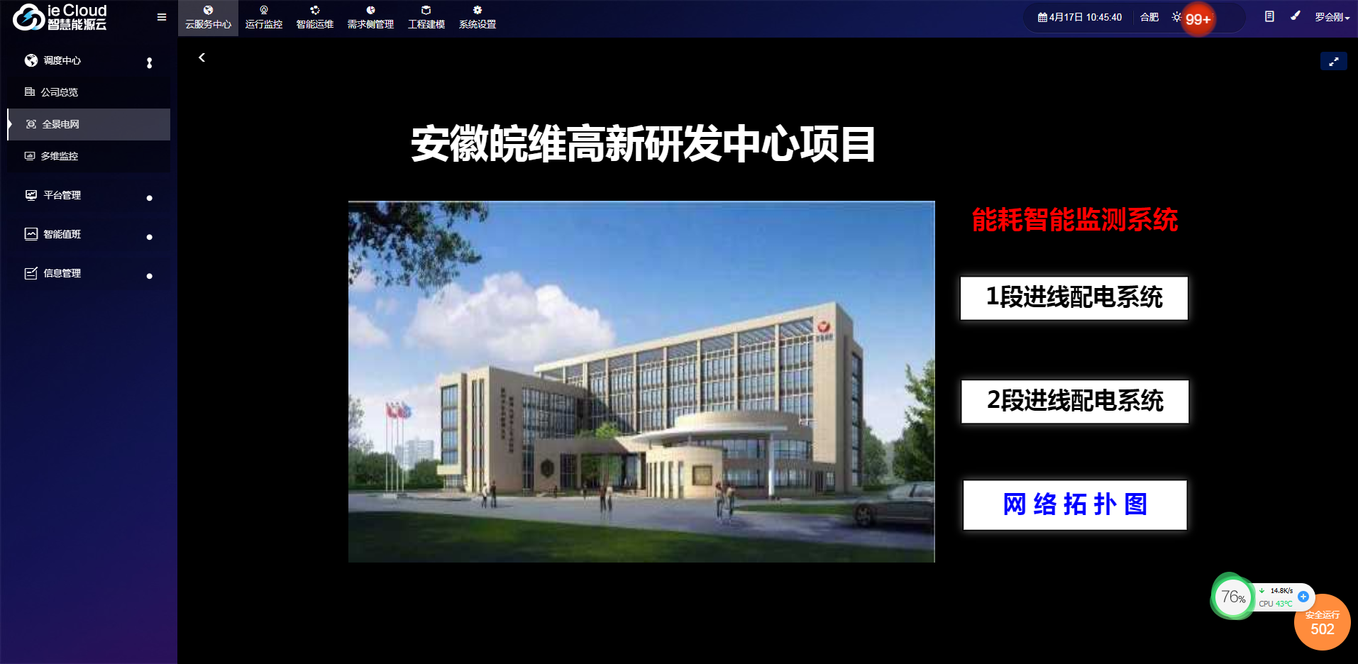 安徽皖維高新研發(fā)中心大樓以及周邊區(qū)域配套工程項目位于安徽省巢湖市巢維路56號,其中研發(fā)大樓總建筑面積約24400平方米,研發(fā)中心大樓包括15層主樓研發(fā)樓、3層輔樓營銷中心樓及地下一層。該研發(fā)中心大樓為本次弱電智能化實(shí)施項目的實(shí)施主體。研發(fā)中心規(guī)劃總建筑面積約24428m2,建筑主樓15層,建筑高度67.5m,建筑功能負(fù)一層為機(jī)動車庫、設(shè)備用房,一至十五層為研發(fā)辦公用房;配套設(shè)施2號樓(職工餐廳、包廂、廚房等)規(guī)劃總建筑面積約1402.7m2,共2層。